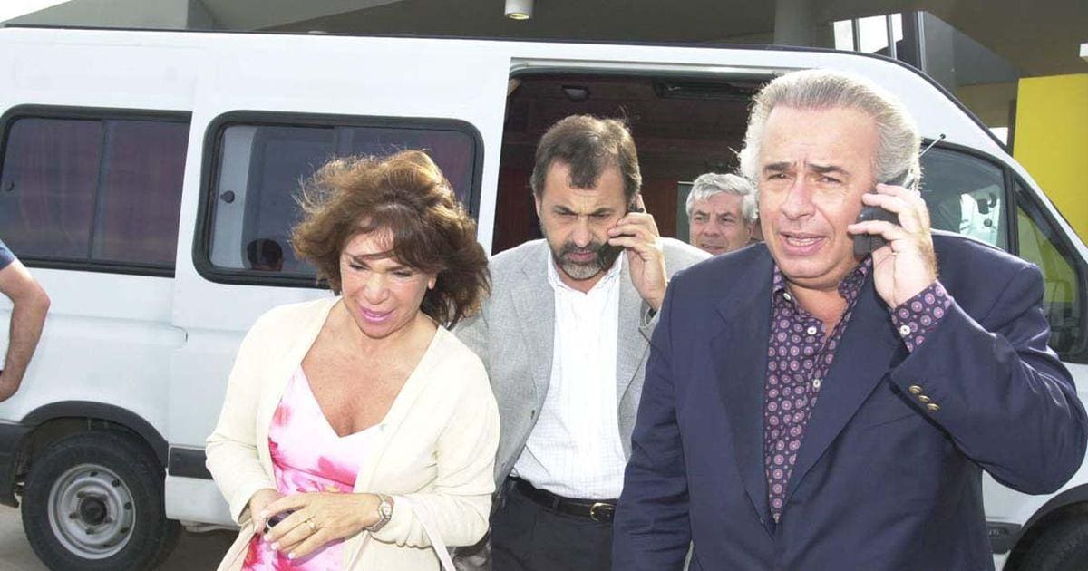José Manuel de la Sota junto a Olga Riutort y Carlos Caserio llegando a la reunión del PJ en San Luis. 20 de diciembre de 2001.