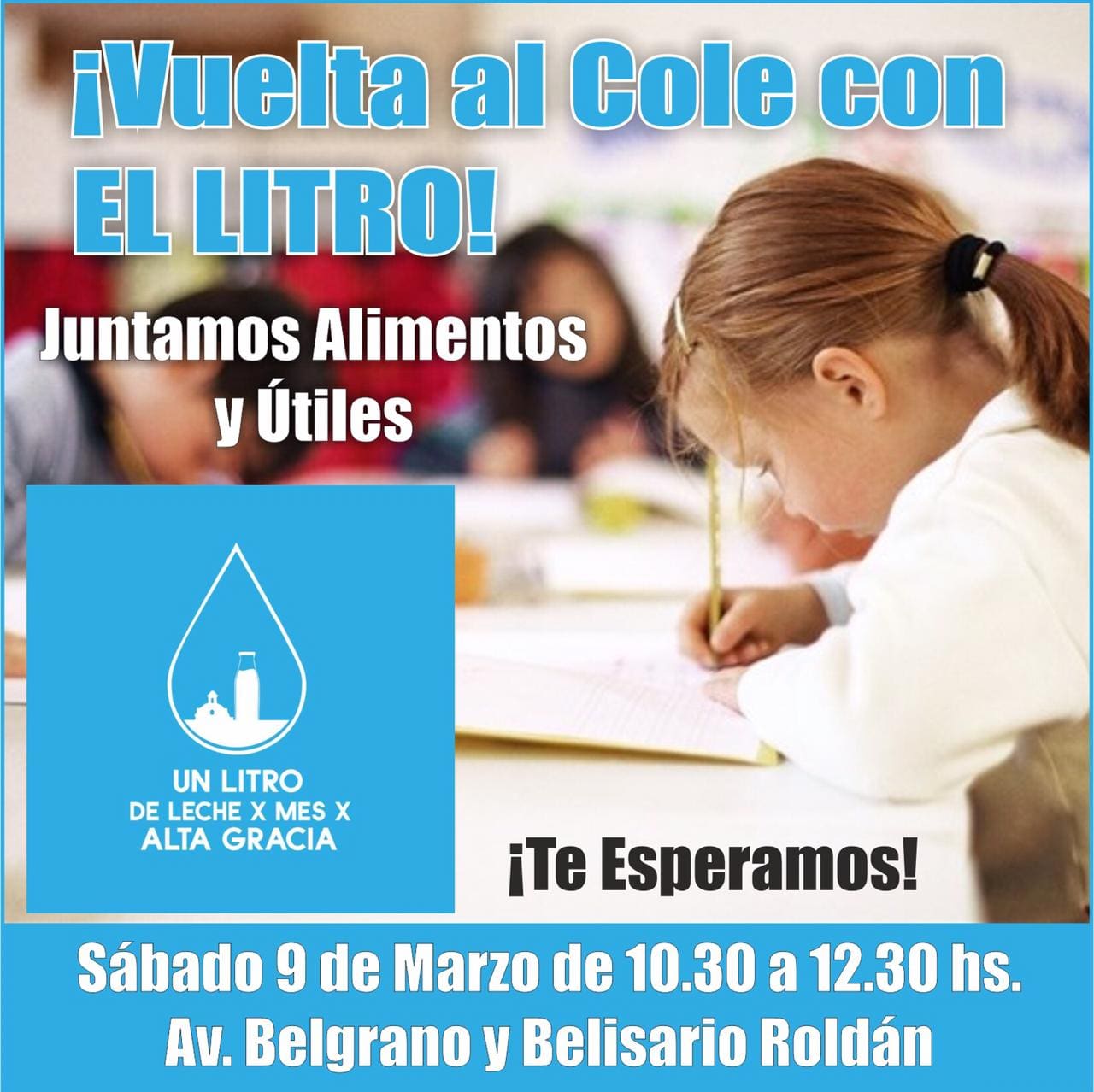 Se viene una nueva colecta de un litro de leche, por parte de los chicos de la conocida ONG local “Un Litro De Leche Por Mes Por Alta Gracia”. Esta vez, con la particularidad de que al habitual pedido de leche, se suma el de útiles escolares para que los niños de bajos recursos también puedan tener un buen comienzo de clases.
