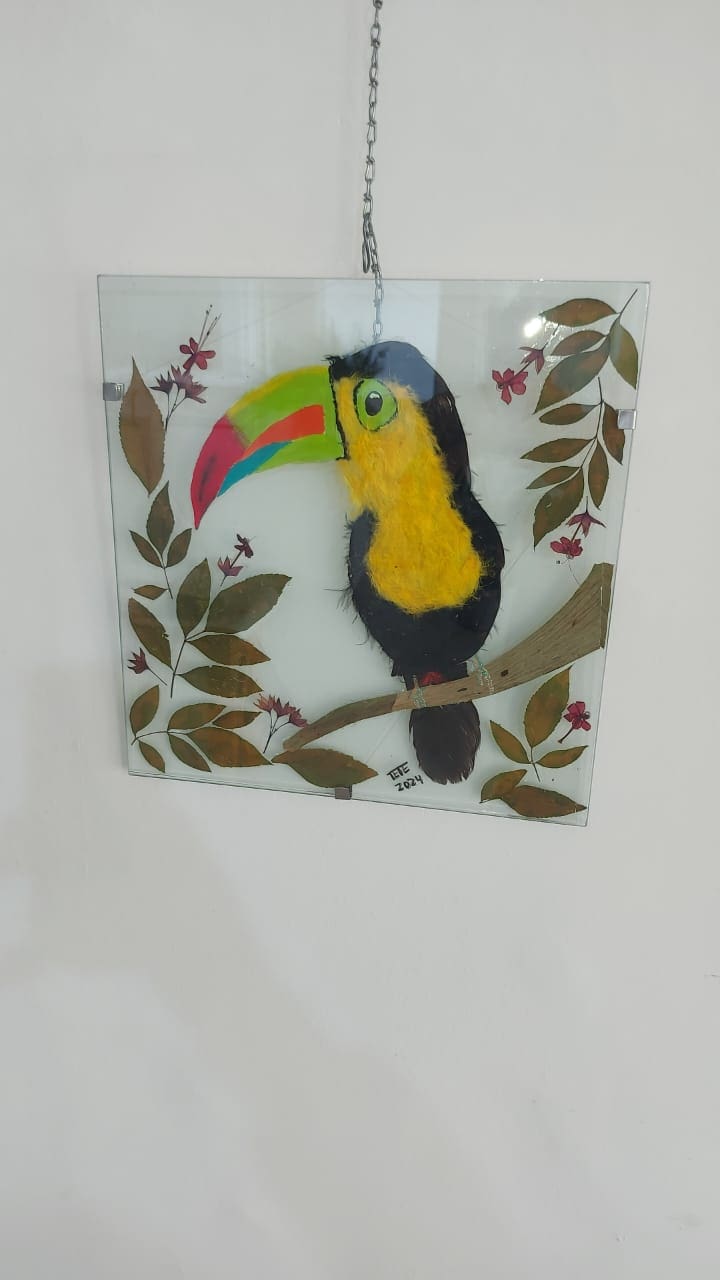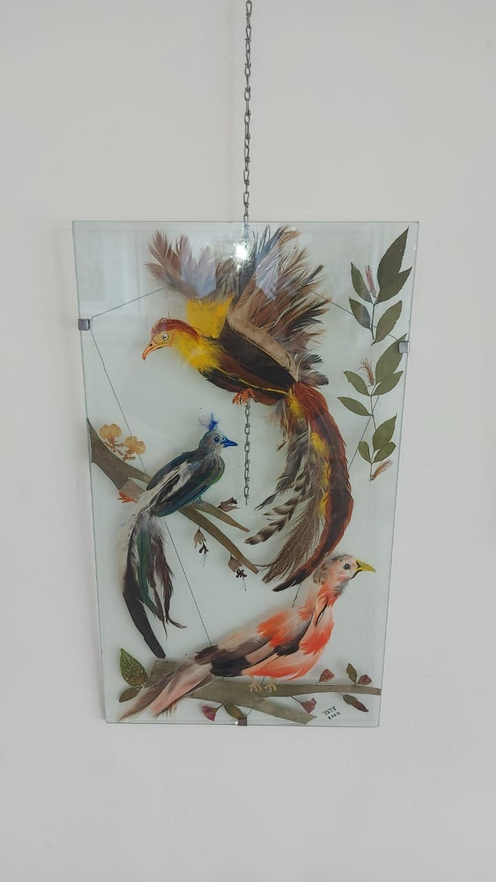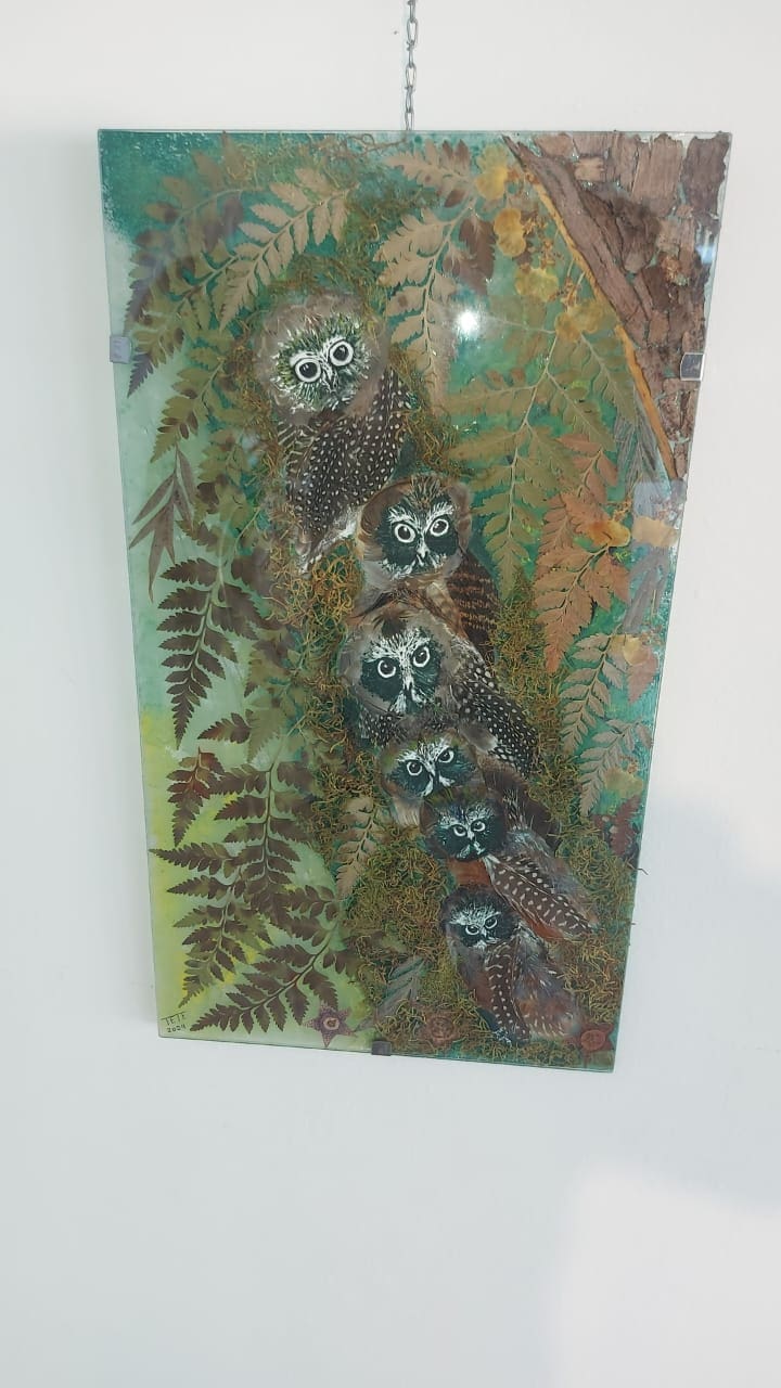 Tete Sosa, artista local a cargo de la exhibición, dialogó con RESUMEN y explicó las técnicas utilizadas en sus obras: “Hace muchos años qué hago manualidades diría yo más qué pintura sola, de cada curso qué hice tanto jardinería cómo pintura me ayudaron a crear esta técnica, qué es recrear aves con plumas reales y también incorpore (ya qué soy peluquera) cabello natural  teñido”.
