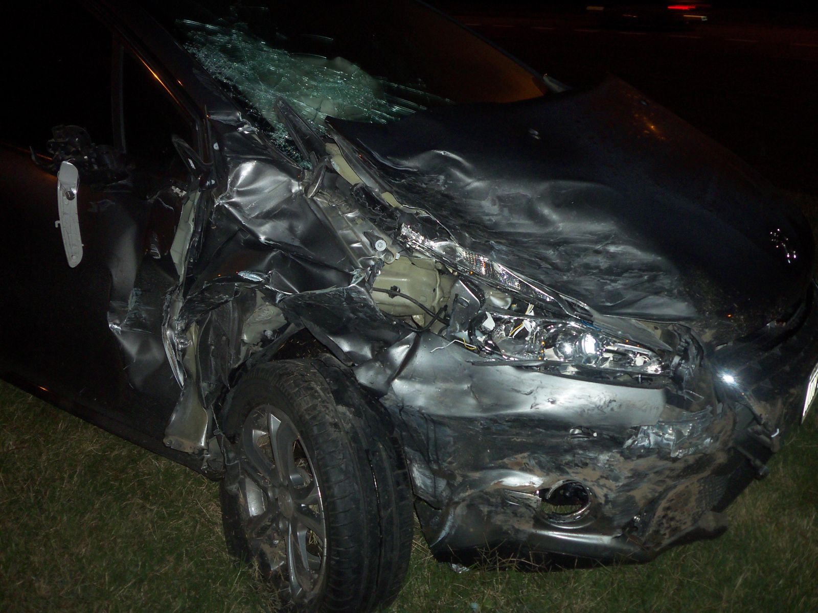 Como consecuencia del accidente, el Renault terminó sobre la banquina con su parte trasera absolutamente destruída, mientra el Peugeot finalizó su recorrido sobre el cantero central de la autovía, a aproximadamente 90 metros del lugar donde se produjo la colisión.