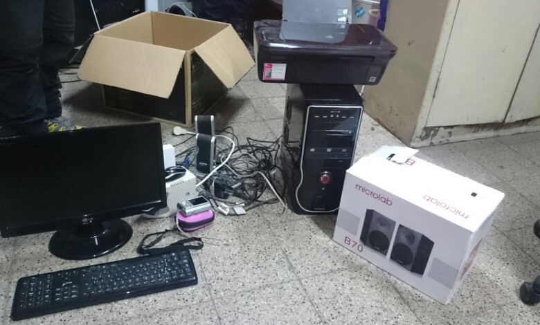 Además se procedió al secuestro de varios elementos, entre ellos, ocho celulares, una computadora completa, un monitor marca LG, una impresora multifuncion, una cámara digital, y un sistema de altavoces nuevo.