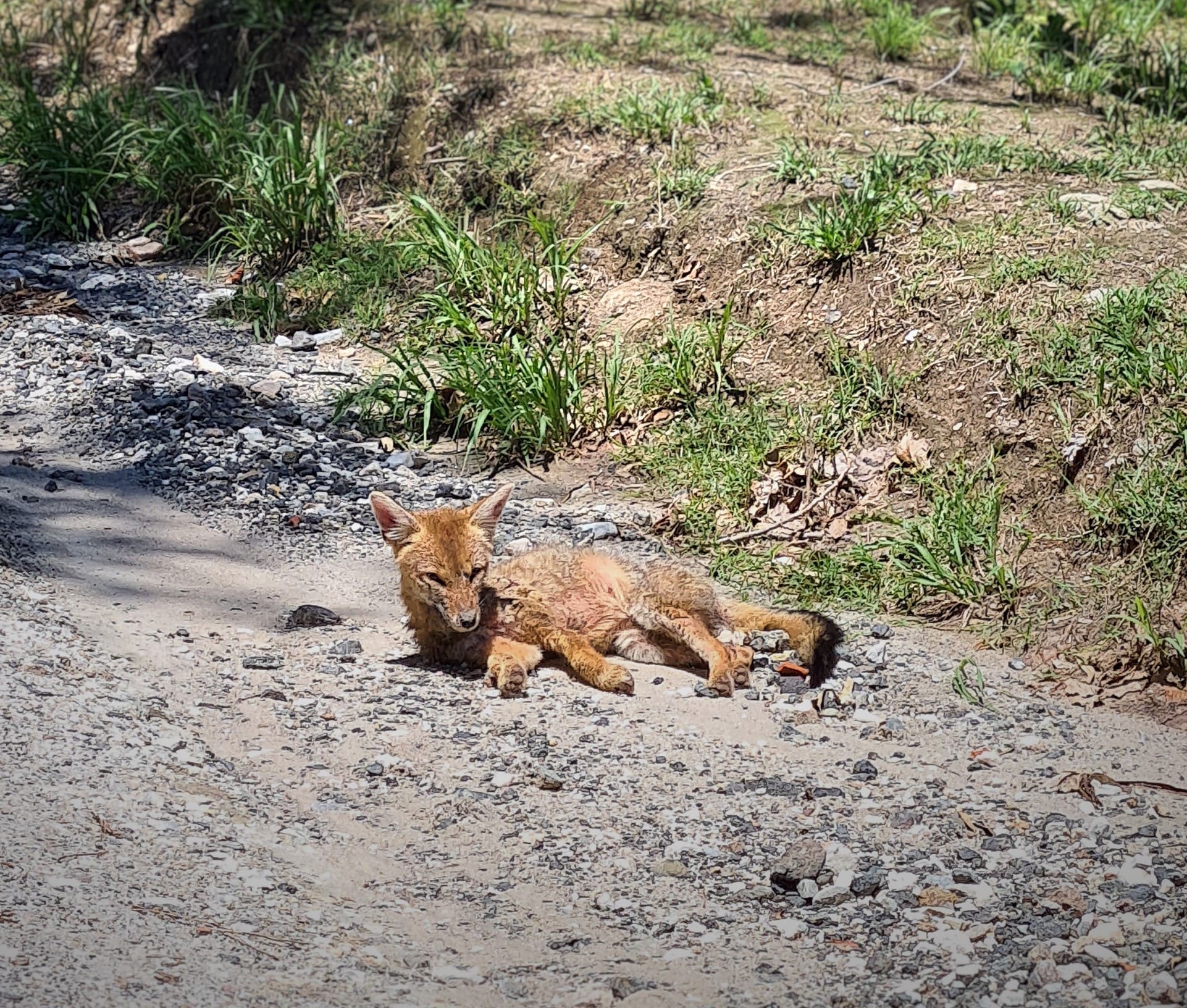 Aparentemente la zorrita parecía tener sarna, ya que le falta pelo en varias partes del cuerpo y se rascaba mucho.