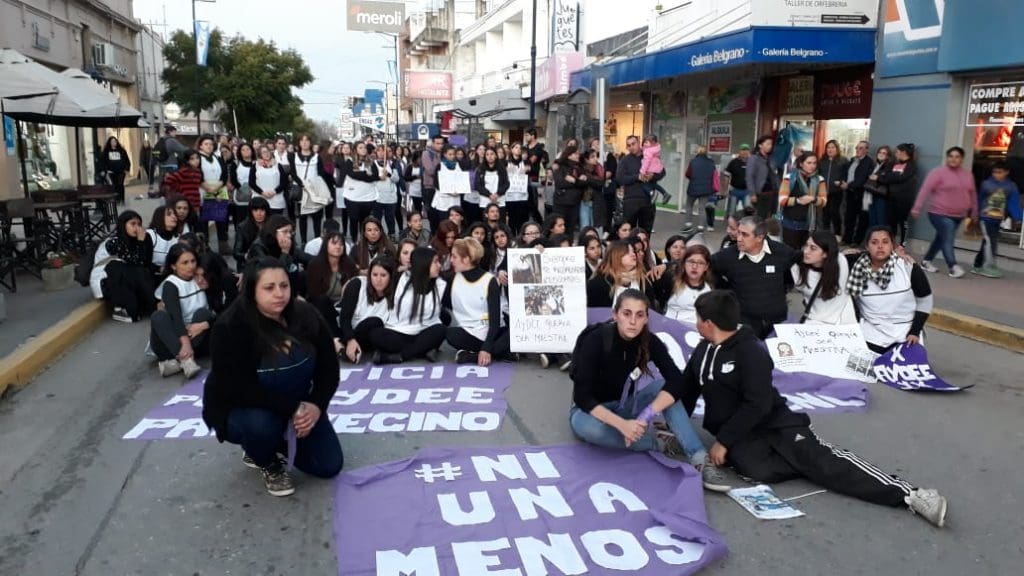 Se vivieron dos minutos de silencios llenos de emoción. Uno fue al comienzo de la marcha en memoria de Aydée, y un segundo minuto fue a la altura de la calle San Martín, donde las presentes se sentaron en el suelo, y rindieron homenaje a todas las victimas de femicidios.