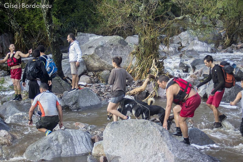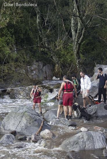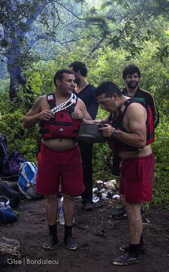Les dimos información de una pareja que estaba atrapada en el cerro de enfrente y 5 extranjeros que a la tarde habían seguido su camino río arriba y las instrucciones fueron claras