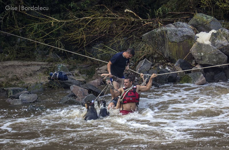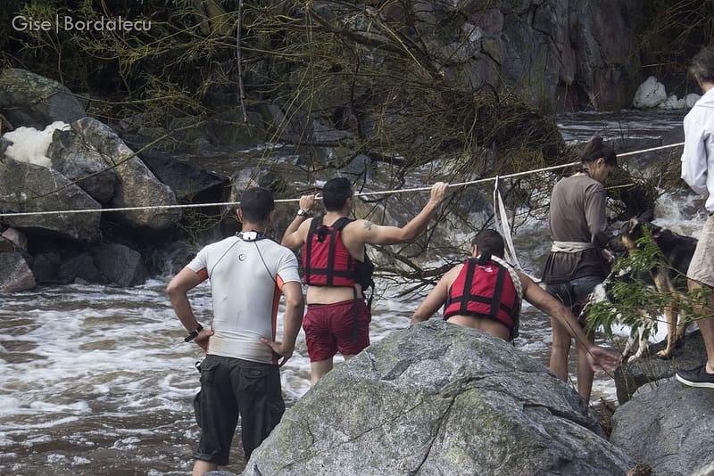 Cuando digo cruces, me refiero a los 6 o 7 cruces de río con sogas y arneses durante toda la noche hasta llegar a un campamento donde ya habían conseguido reunir a otros 11; con los que compartiríamos los últimos 3 cruces durante las primeras horas de la mañana.