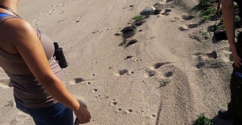 Mauricio Balocco, columnista de «Desayuno Online» trajo para su columna semanal al equipo completo que estuvo buscando los rastros del yaguarundí por la región de la Paisanita. Tres biólogas, un fotográfo de vida silvestre traído especialmente de Buenos Aires buscaron huellas en la arena, restos de animales atacados por esta especie que se consideraba extinta en la región: «la expedición arrancó el martes, duró tres días y pico en el terreno donde se vio al yaguarundí y presas devoradas por el, hoy termina la primera etapa de relevamientos de fauna y del lugar. Encontramos huellas en la arena que por las pisadas y el tranco pueden ser».