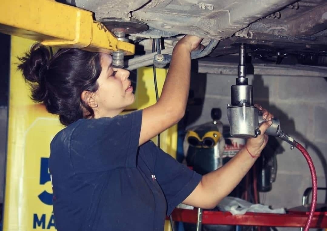Camila tiene 26 años y, mientras cursaba el último año de secundaria, hizo su primer curso de mecánica. Uno de sus hermanos le regaló varias herramientas que hoy en día usa para trabajar. “Quería ir a una escuela técnica donde iba mi hermano pero no estaba terminada. Mis padres están muy contentos. Desde que me criaron me dejaron ser libre, si llego a tener hijos dejaría que hagan lo que les guste. No tengo taller, uso el espacio de la casa de mis padres o trabajo a domicilio”.