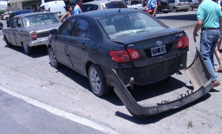 Muy ofuscado se veía al dueño de la Toyota Corolla luego de ser embestido desde atrás por el viejo Falcon en su intento de huida. El primer auto solo había sufrido un leve toque en su chapa patente.