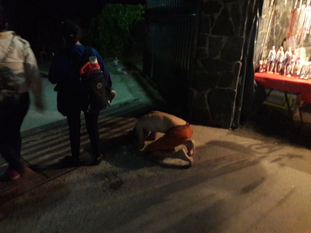 Jonathan vino caminando desde Córdoba y es uno de los fieles que llegaron hasta el altar arrodillados, hazaña que le llevó media hora. Cuenta que realiza la peregrinación todos los años desde 2012: “Venía fumando, tiré el cigarrillo cuando estaba por entrar y de ahí no fumé más, desde 2012”. En ese momento, le pedía a la Virgen por la salud de su abuela. “A los tres días falleció mi abuela, pero lo mismo, seguí viniendo. Yo lo que le pido es salud para mi familia y trabajo, que es demasiado ya. Siempre me cumplió. Salud y trabajo. Más salud que trabajo, pero lo más importante es la salud”, afirma, mientras comenta que es la tercera vez que realiza el recorrido desde la entrada de La Gruta hasta el altar arrodillado. En lo que respecta a los preparativas para venir, comenta que siempre sale a correr o caminar los días previos a la festividad.