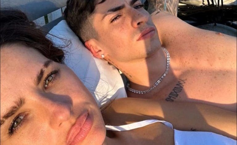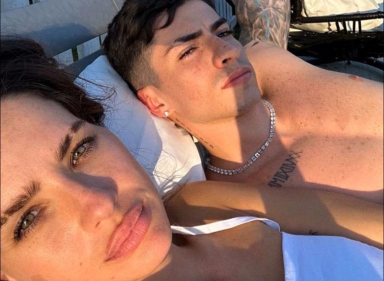 En la imagen se los ve a los dos recostados en una reposera tomando sol, el influencer arrobó a la actriz y agregó dos emojis de corazón blanqueando su relación en redes sociales.