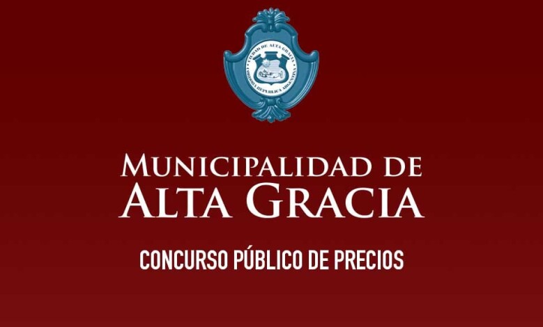 La Municipalidad de Alta Gracia llama a Concurso Público de Precios para el día 15 de Febrero de 2013, a las 11:00 hs., en la oficina de la Secretaría de Obras y Servicios Públicos de la Municipalidad de Alta Gracia, sita en calle Pte. Perón S/N – Terminal de Ómnibus, con el objeto de la contratación de la provisión de materiales, equipos y mano de obra necesarios para la ejecución de carpeta asfáltica en sectores varios de la Ciudad, según las especificaciones que se mencionan en el Pliego de Condiciones.