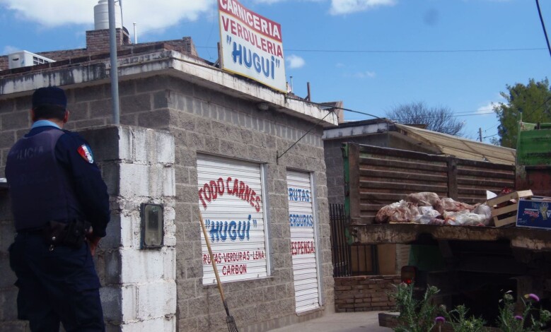Dentro de la carnicería «Hugi», quedó carne frizada que será retirada del lugar durante el día de mañana.