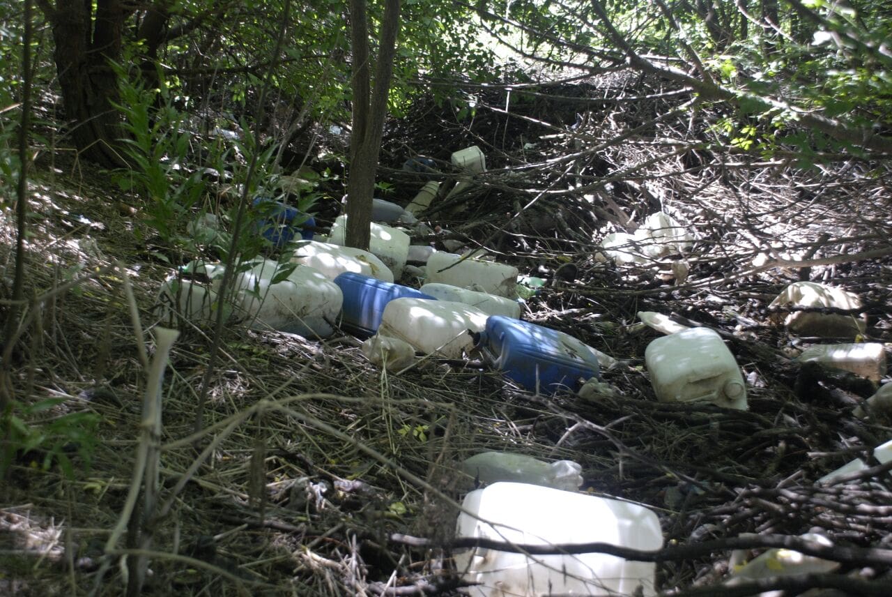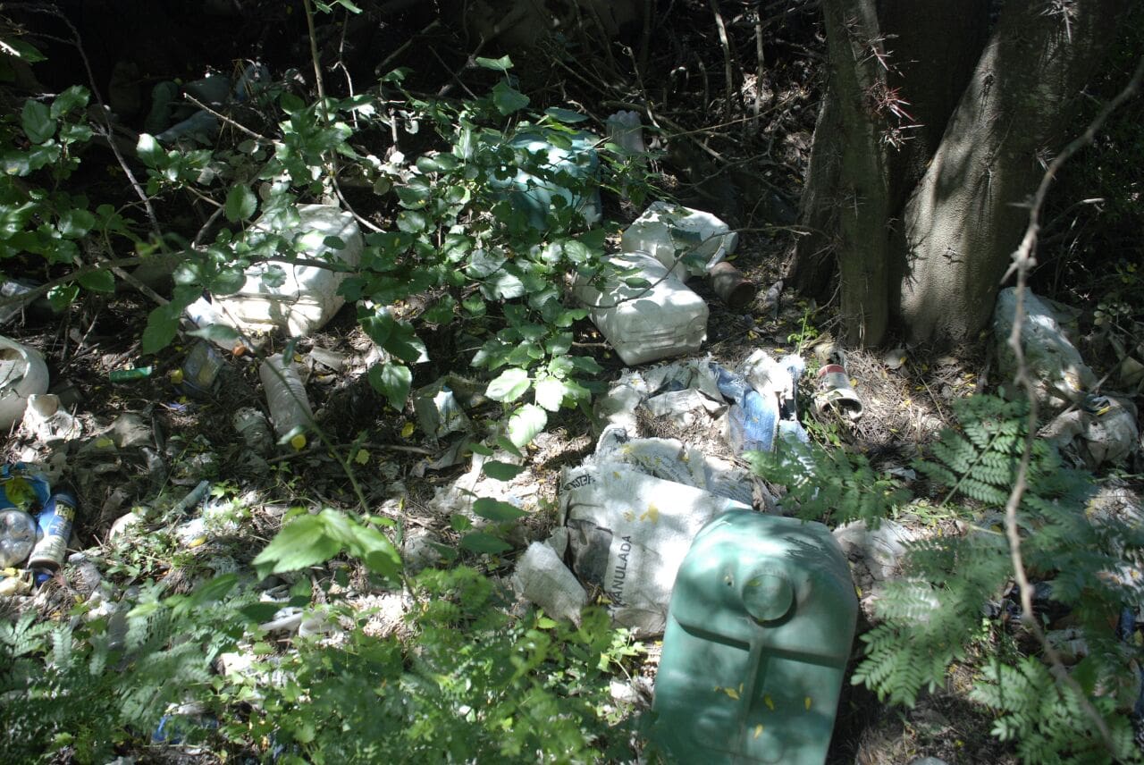 Uno de los datos que resalatan con mayor firmeza es la proximidad que tienen los campos con la escuela de la zona y adjuntan fotografías de envases que contuvieron agroquímicos dispersos por distintos lugares.