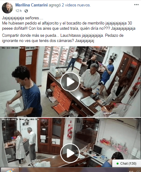 “Me hubiesen pedido el alfajorcito y el bocadito de membrillo jajajajajajaja 30 peeee doñita!!!, dice el posteo de la mujer que luego de percatarse por las cámaras de vigilancia que tiene su local, decidió hacer el conocido “escrache” por el “permitido” que se había dado la señora.