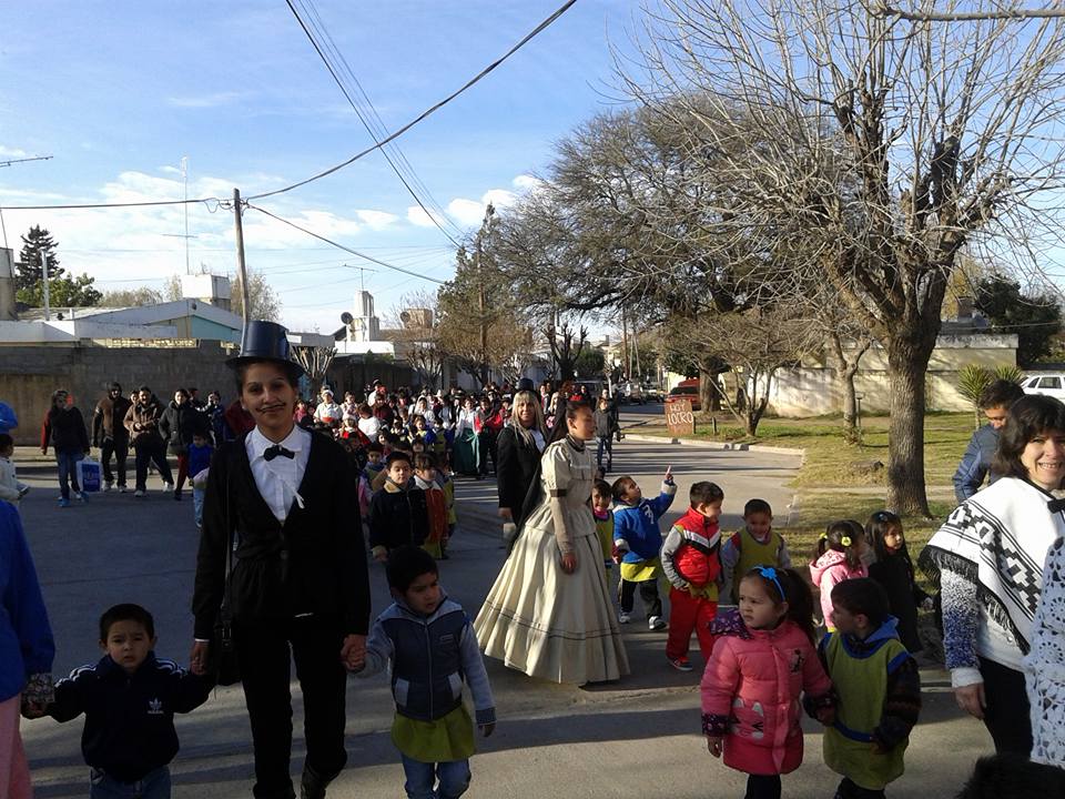 La fiesta comenzó con un desfile de todos los chicos y sus padres por las calles del barrio, para luego desarrollarse en el patio de la escuela primaria.