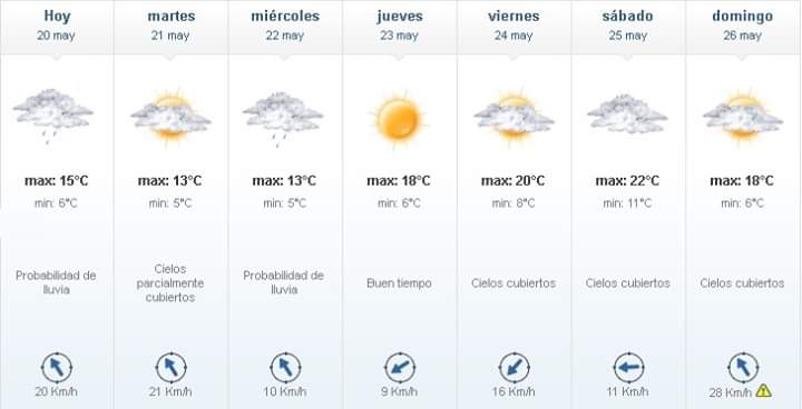 Para hoy se espera una temperatura máxima de apenas 15º, con un cielo cubierto. «El aire frío de origen polar al área central, causando un marcado descenso de la temperatura. Nevadas en zonal alta ( altas cumbres)».