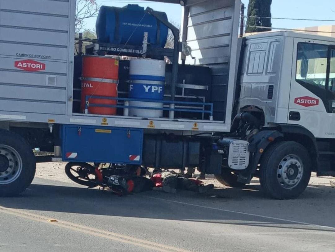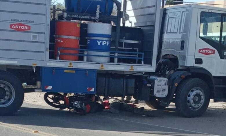 Por causas desconocidas, un motociclista de 23 años, identificado como Julián Giménez, fue embestido por un camión Iveco transportador de aceites y fluidos y terminó debajo del mismo.