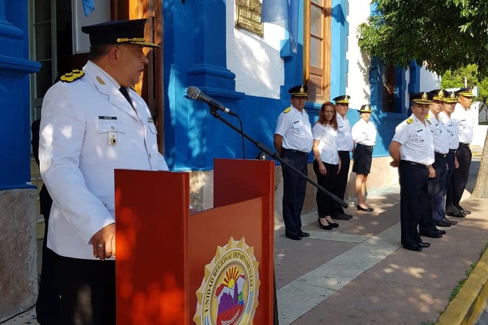 Como tradicionalmente se hace, se izó la bandera y luego el Jefe de Zona Inspección Nº 1, Comisario Inspector Leonardo Pino, dio un discurso donde transmitió y destacó el esfuerzo que cotidianamente realizan los policías, como así también recordar a los caídos en el servicio.