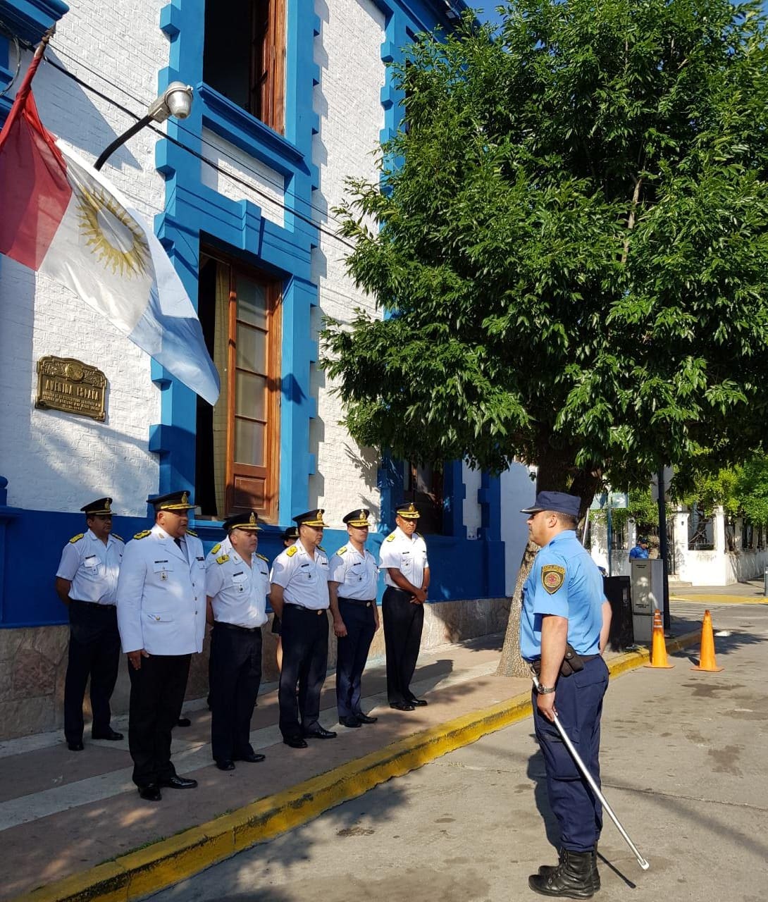 Hoy por la mañana, a las 8:30, se llevó a cabo el tradicional acto por el Día Del Policía en la calle España. Participaron el Comisario Mayor Carlos Destefani, quien presidió el homenaje, y también Jefes de Zonas Inspección Nº I,II,III,IV, Oficiales Jefes, Personal Subalterno y familiares.