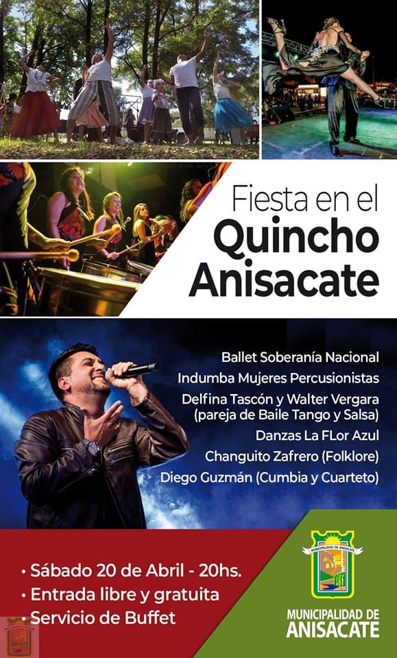 Hoy sábado a partir de las 20:00hs habrá fiesta en el «Quincho Anisacate», habrá distintos shows de danza y música en vivo, además un gran buffet.