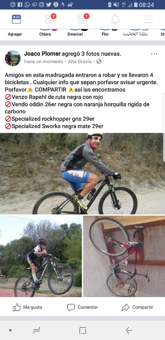 Los aficionados a este deporte rápidamente se hicieron eco del pedido y difundieron las imágenes de los rodados. Cualquier información, comunicarse al teléfono: 0354 7- 15465678.