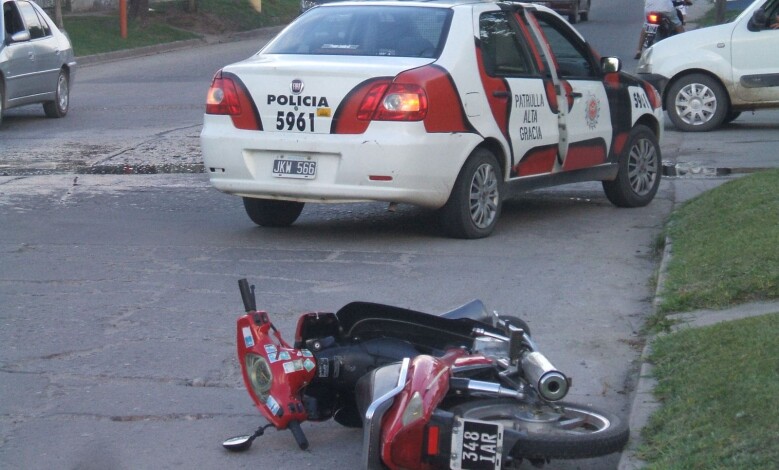 El acompañante de la motocicleta fue derivado al Hospital local con politraumatismos varios y una herida cortante en la rodilla derecha.
