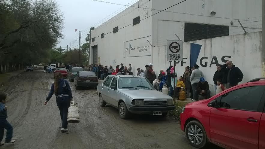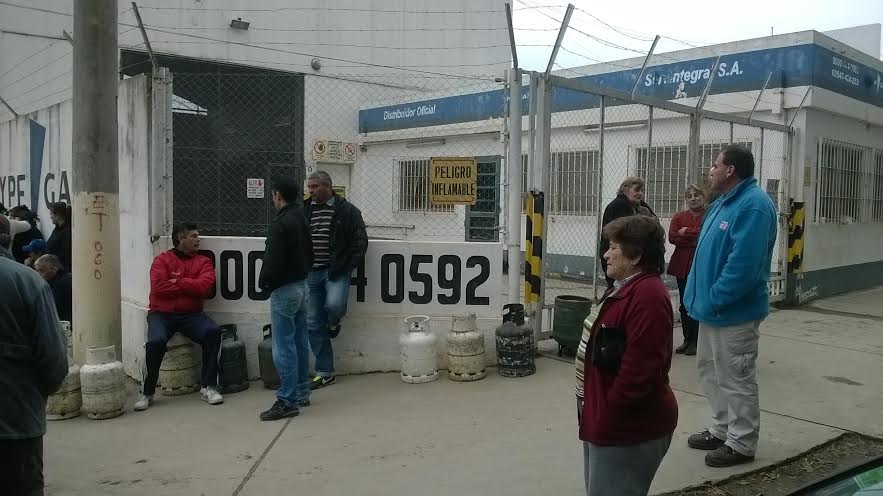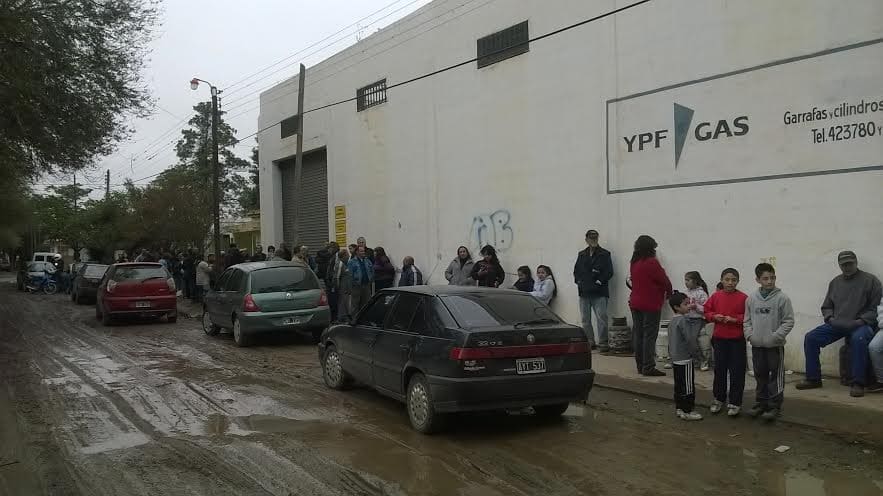 Al menos durante 5 horas hacen guardia, garrafa en mano, los usuarios de gas envasado de nuestra ciudad y alrededores frente al único expendio que en la actualidad puede complacer la demanda al valor “social”, $16. El sitio es el ubicado sobre Ruta C-45, a metros del Crucero.