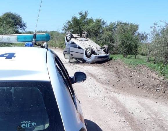 Un menor de 17 años (quien sorprendentemente poseía carnet de conducir) perdió el control de un Chevrolet Meriva color gris y quedó volcado en el camino. El joven, oriundo de  Parque El Aromo, de la localidad de Anisacate sufrió politraumatismos y debió ser trasladado al Hospital Illia.
