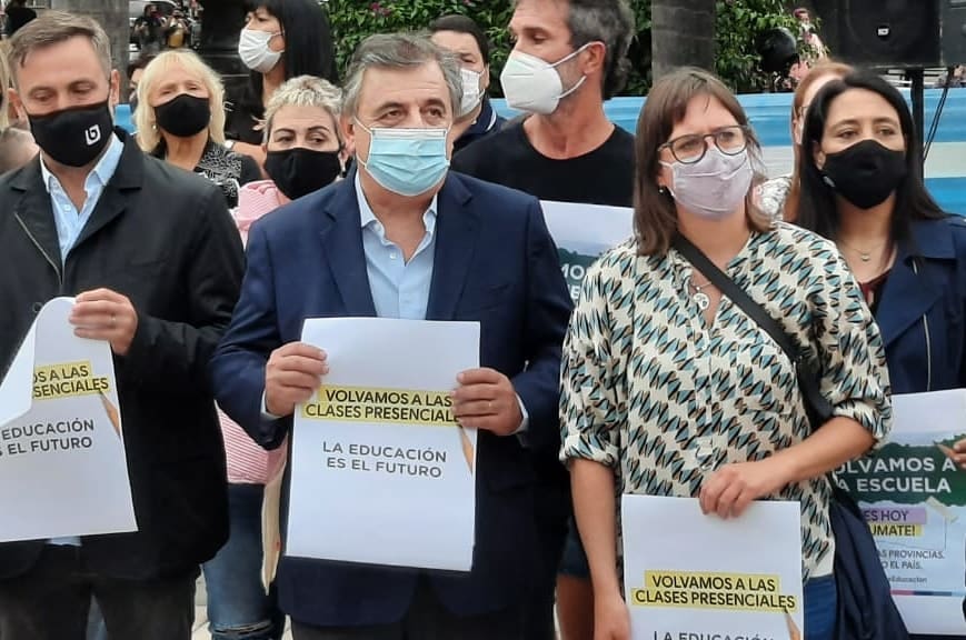 Ayer, en el día en que se debian presentar listas para las elecciones internas de la UCR, la alianza Juntos por el Cambio llevó a cabo un «Aula Abierta» para reclamar el retorno a clases presenciales en todo el país.