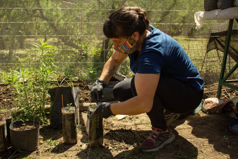 Bajo el programa de reforestación, voluntarias dela Escuela Ambiental de Anisacate, se acercaron a la casa de sombra para controlar el crecimiento de las semillas sembradas hace más de un mes.