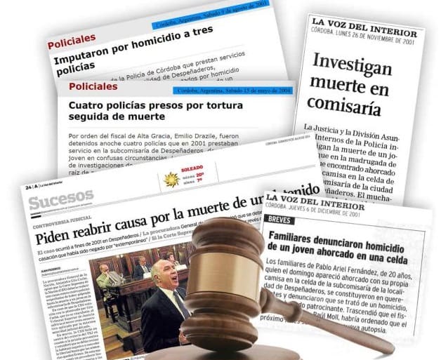 Desde hace casi dos décadas, la familia de Pablo Ariel Fernández (21) peregrina por despachos de jueces y fiscales. El 24 de noviembre de 2001, el joven que trabajaba en una carnicería y vivía en Alta Gracia, fue a bailar a un boliche en Despeñaderos. Por una riña con otro muchacho terminó demorado en la subcomisaría de esa localidad. Cometió el error de pelearse nada menos que con el hijo del titular de la dependencia policial, Lucas Machado.