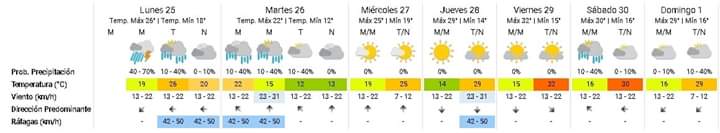 «El paso de un frente frío, causará la evolución de tormentas y chaparrones, con posterior descenso de la temperatura«.