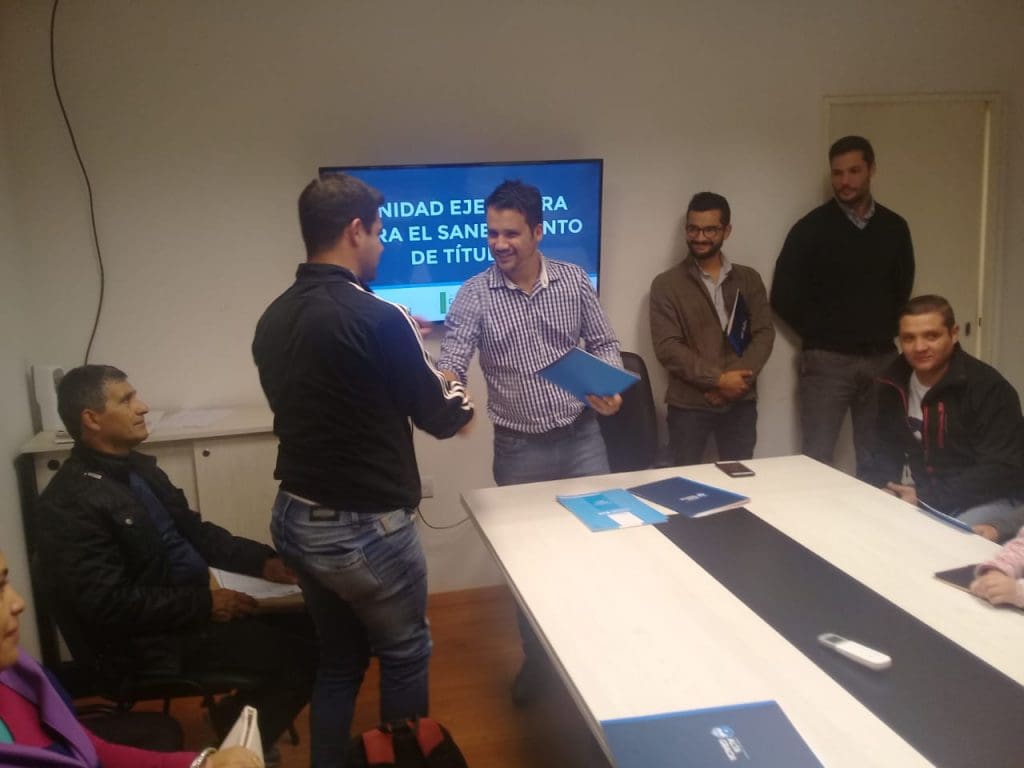 En la jornada de hoy jueves 28 de marzo el Secretario de Gobierno Marcos Torres entregó a vecinos de nuestra ciudad 3 resoluciones que los declara como legítimos poseedores a los vecinos que cumplieron satisfactoriamente con toda las etapas establecidas en la ley 9150. Además se entregaron 10 certificados de inicio de trámite para aquellos vecinos que comenzaron el camino para lograr la inscripción en el registro de poseedores de la provincia de Córdoba.