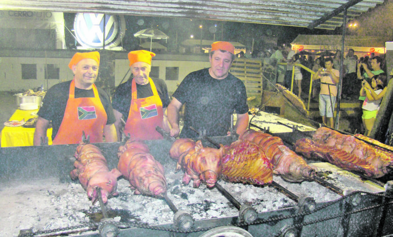 Sudáfrica: Cabritos, costillares a la llama, cochinillo relleno (el espectáculo de este año) a $ 65 la porción, guiso de porotos negros, recortes de vaca $ 30.
