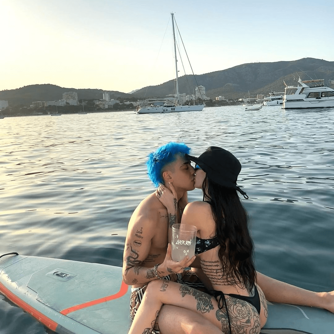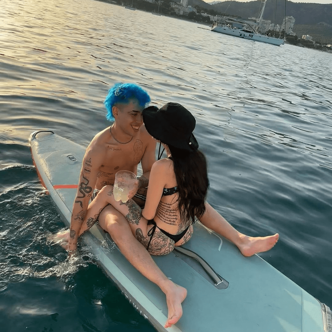 En ese sentido, y después de presentarse en el Reggaeton Beach Festival de Asturias pero antes de hacerlo en Mallorca, ella le dedicó en sus redes sociales un amoroso posteo al cantante cordobés. Al feed de su perfil de Instagram subió un video en el que se los ve a ambos sentados en medio del mar y sobre una tabla para flotar, mientras cae el atardecer. Primero ella está de espaldas a él, bebiendo algo que parece una pritteada (vino mezclado con gaseosa de pomelo, trago típico de Córdoba) desde una botella cortada. Después del trago, ella se voltea para tenerlo de frente y darle un largo beso.