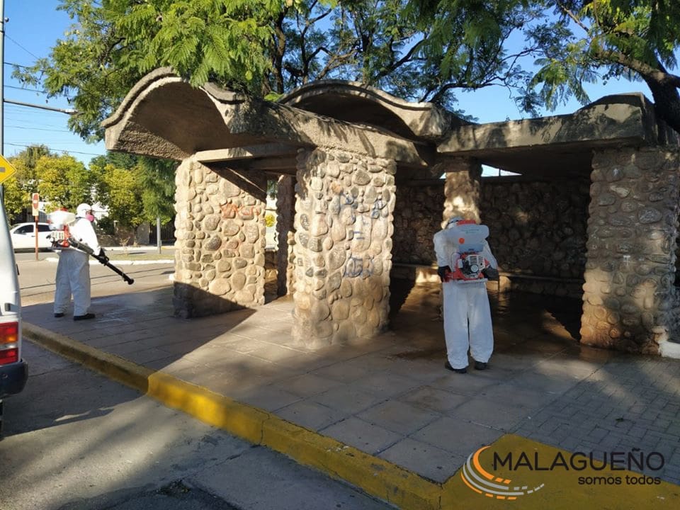 A su vez, trabajadores del Municipio recorren las calles de la ciudad desinfectando los puntos más concurridos, como los locales céntricos.