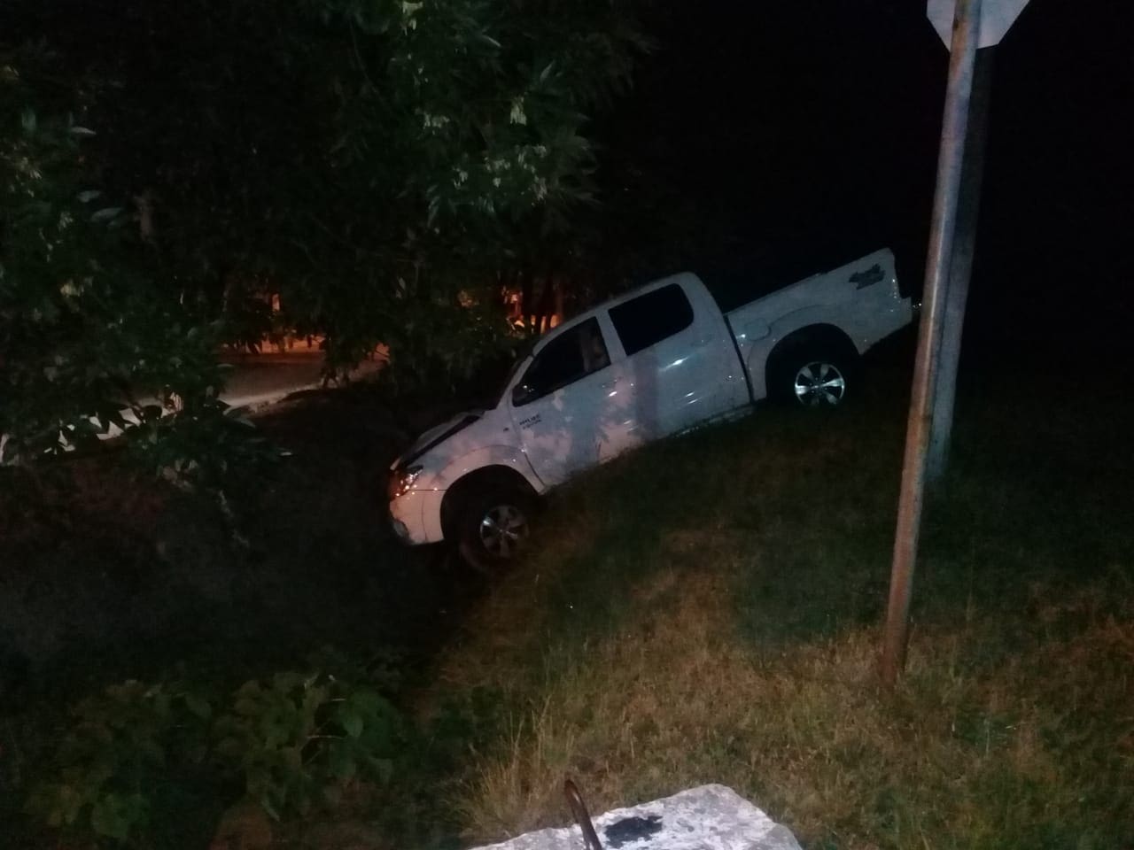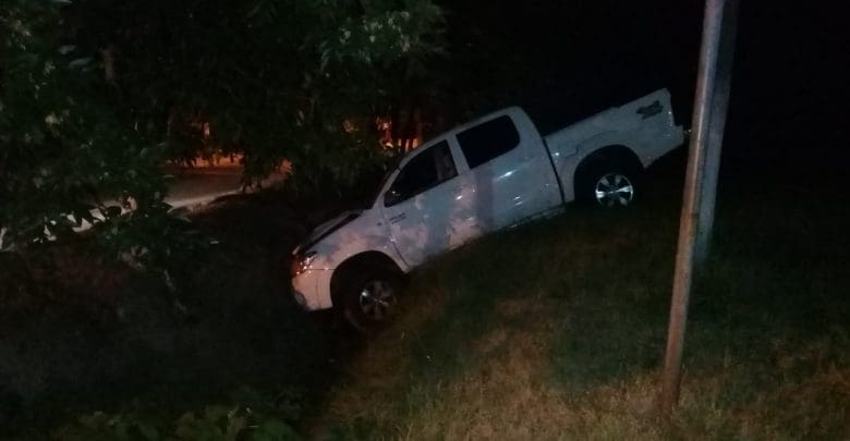 Esta madrugada personal se comisionó el la colectora de Ruta 20 a la altura de Isla Soledad, justo en el ingreso a de B° 1ro de mayo, donde observaron a una camioneta Toyota Hilux, incrustada en el canal