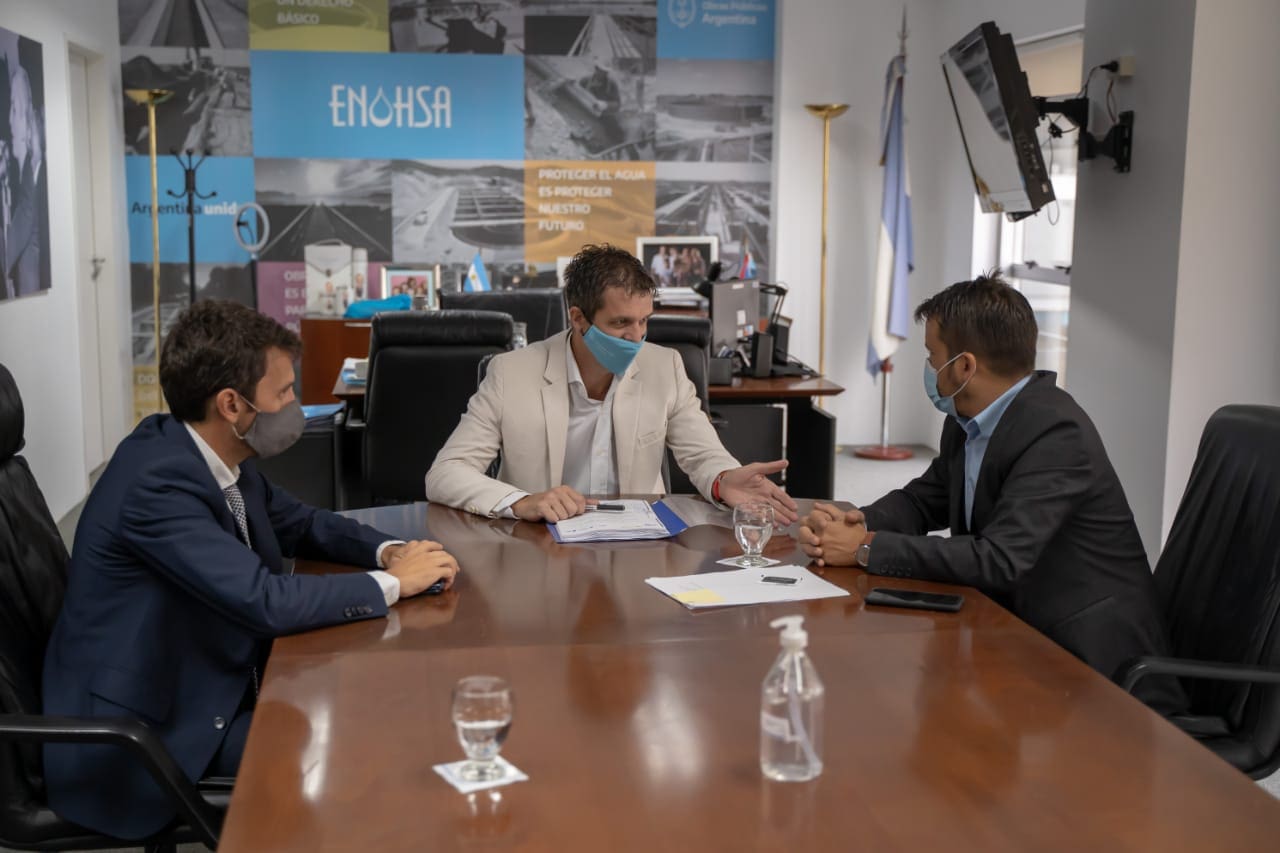 El Intendente volvió a reunirse hoy en Buenos Aires con autoridades del Ente Nacional de Obras Hídricas de Saneamiento para la concreción del proyecto que llevará la red de agua potable a barrios de la ciudad y mejoras en el servicio de la ciudad en general.