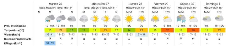 Una jornada con marcado descenso de la temperatura y la probabilidad de tormentas dispersas, la que anticipa para este martes el pronóstico de Defensa Civil.