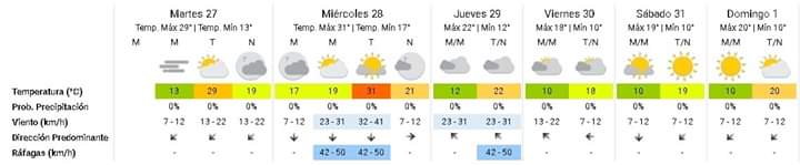 En tanto, para el jueves desciende un poco y se ubicaría en los 22°.