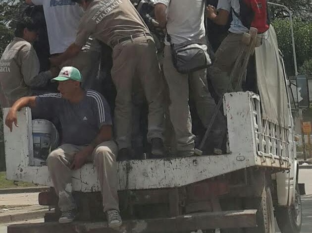 Un camión perteneciente a la Planta Hormigonera fue pescado «in fraganti» cuando transportaba a varios empleados municipales sin las medidas de seguridad correspondientes, en inmediaciones al predio de Colectividades, el pasado viernes.