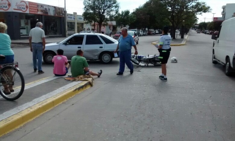 Hace instantes se produjo el accidente, del cual resultó herido el motociclista con heridas leves.