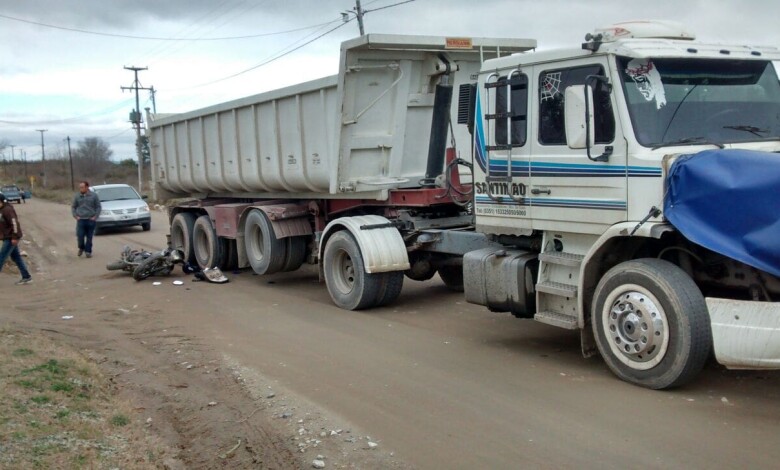 Un camión Scania 219 conducido por Alberto Godoy (31), colisionó con una motocicleta Guerrero 200 cc al mando de Agustín Amuchastegui (18).