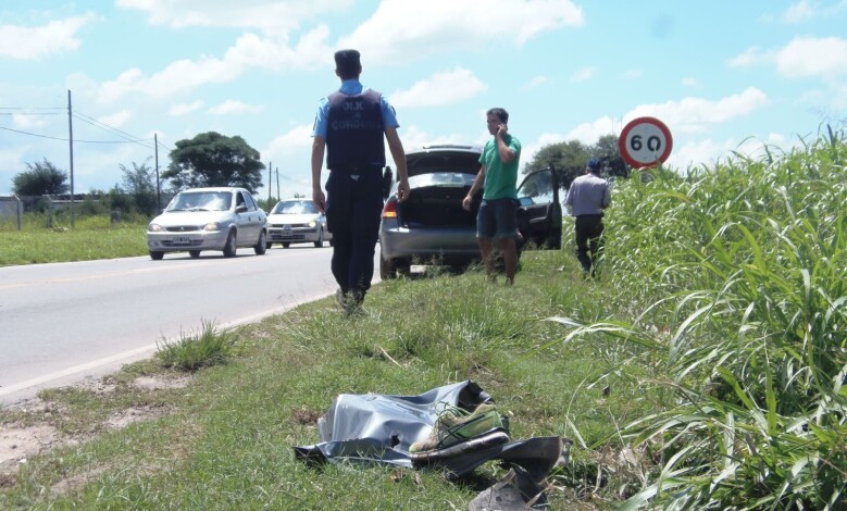 Tras el impacto el vehículo menor quedó tirado en medio de la maleza al costado de la ruta.