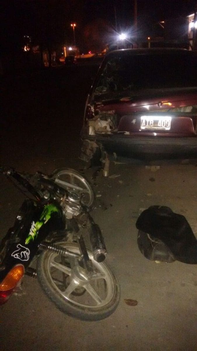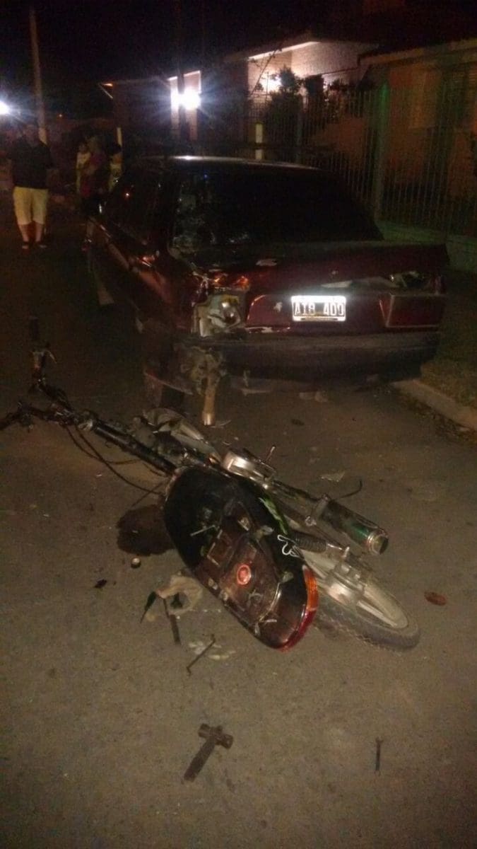 En el lugar, una motocicleta Maverick 110cc colisionó con un Reanult 9 que se encontraba estacionado en el lugar.