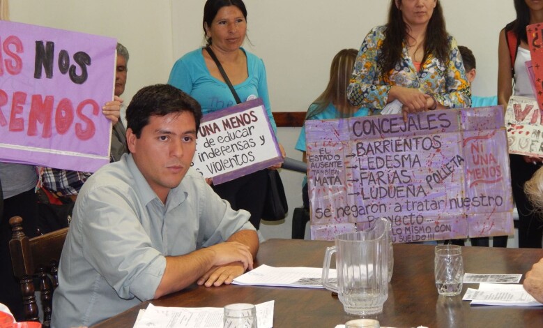 Belén Aguirre fue una de las encargadas de señalar a los concejales oficialistas su falta de apoyo (lo que ya estaba explicitado en una pancarta con los nombres de cada uno), y apuntó directamente al presidente del bloque de Unión por Córdoba, Diego Barrientos, por no habilitar el debate al tema en las sesiones previas.