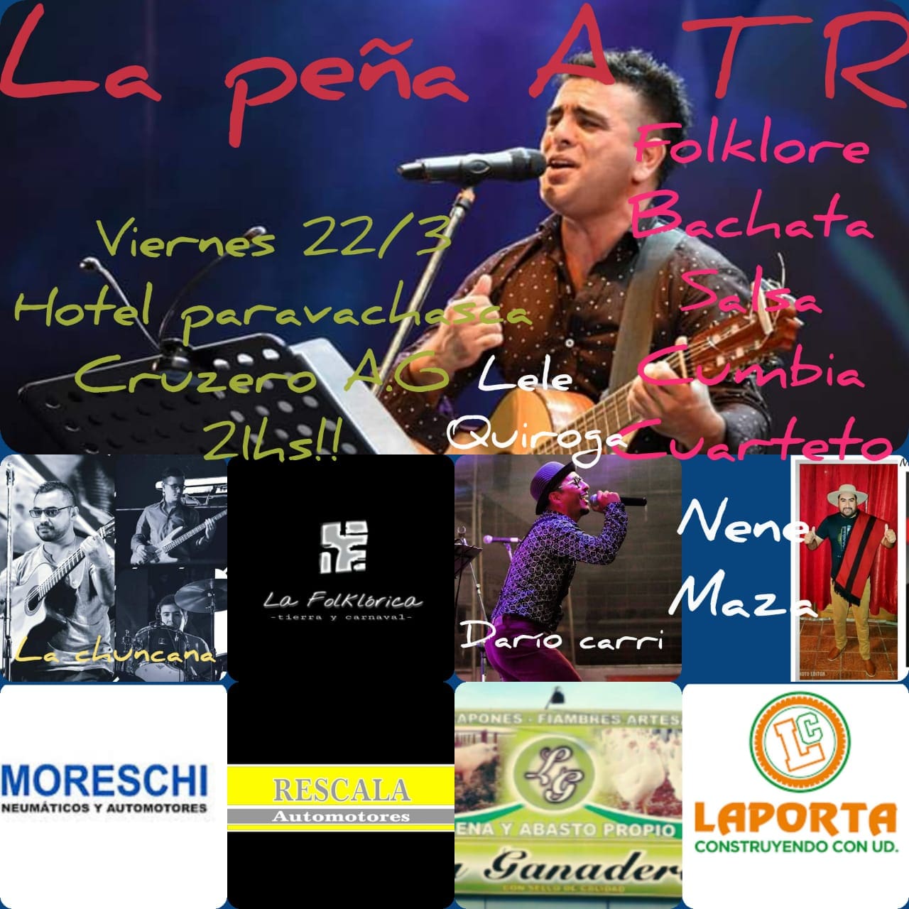 «Se llama Peña ATR porque aparte de folklore, va a haber salsa, bachata, cumbia cuarteto y temas noventoso. Actuarán La Chuncana, Nene Maza, La Folklórica, Darío Carri, Darío Cobo, Lucas belbruno y los hermanos Mamonde de La voz Argentina a voz Argentina y tendrá un costo de $100 pesos la entrada«, contó Quiroga sobre el evento poligénero que organizan para que pueda recuperar los instrumentos musicales.
