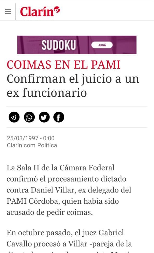 Pero ¿hay más? Sí. Su nombre fue título en medios nacionales, mientras era delegado de PAMI en Córdoba, cuando el dueño de un geriátrico le efectuó una denuncia sumamente grave, al parecer por derivación de pacientes. Al menos, eso publicó la prensa.