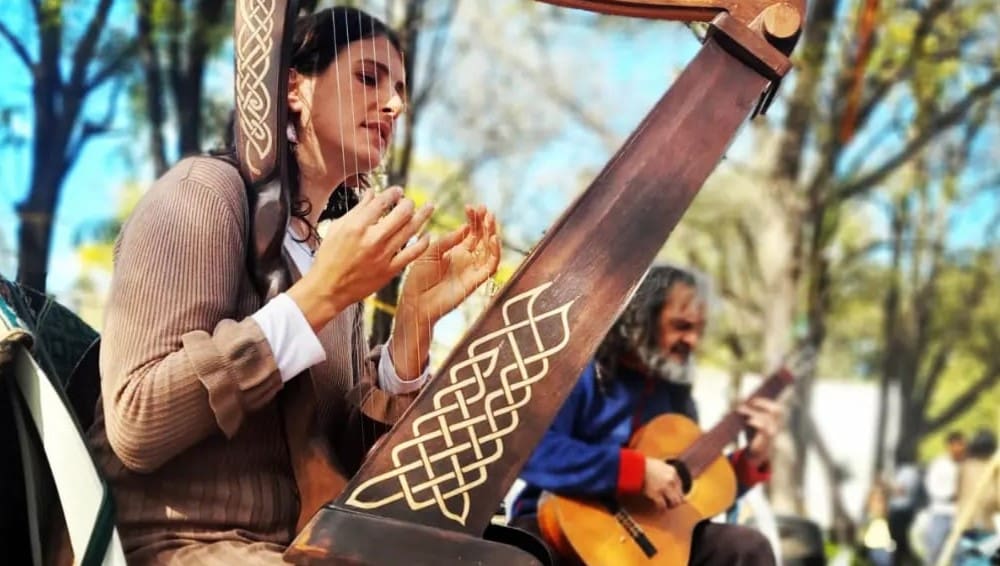 ¿Quiénes se van a estar presentando el domingo? El duelo de arpa y guitarra: Casa de Piedra. El repertorio que van a presentar es de música sefardí, música medieval y barroca francesa, y canciones propias que tienen un aire antiguo. También, la pareja presentará otro repertorio de sólo sus canciones (composición musical y poesías) con arpa, guitarra y voces.