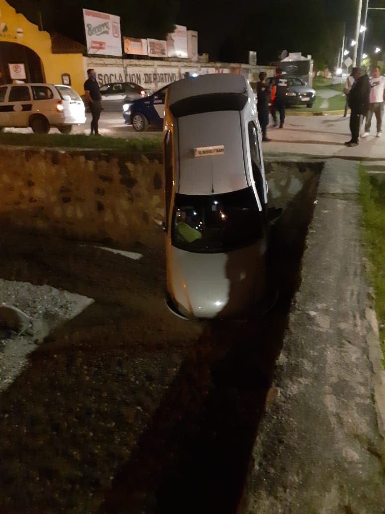 El conductor de un remis, un hombre de 58 años, por causas desconocidas, perdió el control y terminó dentro del canal de desague. Por fortuna salió ileso. Hay versiones que aseguran que habría estado huyendo de un asaltante aunque eso no fue confirmado por la Policia.
